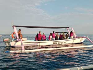 Share boat/Group tour, +/-2 hours duration. Meet at Celuk Agung Beach by 5:45 AM. Can be combined with snorkeling, but not with ‘Swim with the Dolphin’. Hotel pick-up upon request.